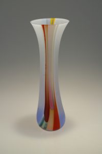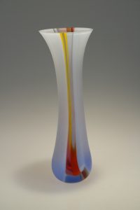 Gwawr II (Dawn) Vessel was inspired by watching the Sunrise over the breathtaking sunrise over the Strait of Otranto, Italy, a narrow stretch connecting the Adriatic Sea with the Ionian Sea, observing the colours changing second by second. The colours made a big impression on Ruth.